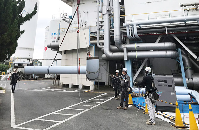 プラント足場はもちろん、タンク等の円形の足場から吊り足場まで様々な用途に安全に誠実に対応致します。